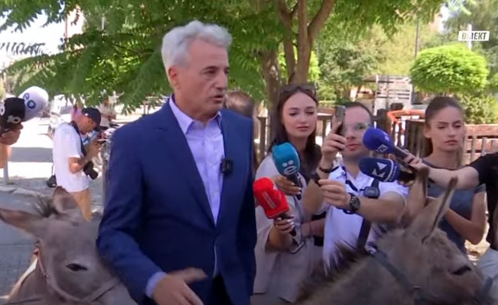 Një qytetar (protestues) ka treguar edhe arsyen se pse i kanë sjellur gomarët para hyrjes.