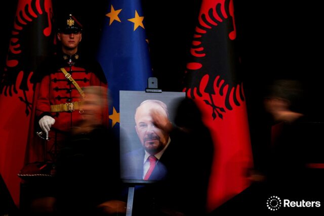 Florion Goga, fotografi shqiptar, ka shkrepur për reuters fotografi nga ceremonia shtetërore e varrimit të ish-kryeministrit të Shqipërisë, Fatos Nano, e cila u mbajt sot në Tiranë.