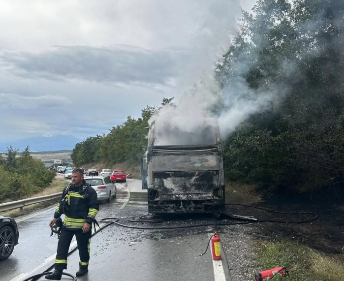 Një autobus është përfshirë nga flakët gjatë pasdites së sotme në Qafë të Duhlës.
