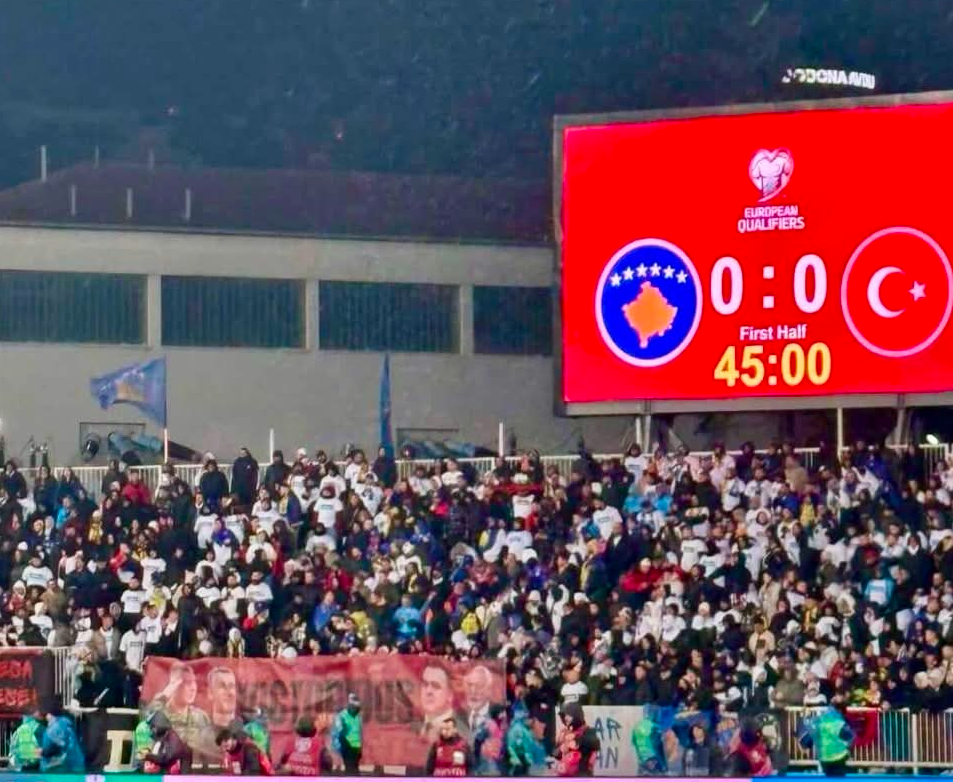 Në ndeshjen e mbrëmshme ndërmjet Kosovës dhe Turqisë, tifozëria “Dardanët” u kujdesën që përveç atmosferës elektrizuese në tribuna, ta përcjellin edhe një mesazh të fuqishëm përmes një koreografie të veçantë.