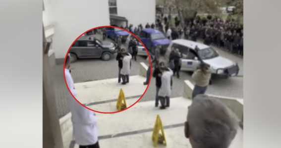 Një pjesëtar i sigurimit të Speciales ndërhyu ashpër, duke ia bërë një shenjë me gisht mjekut.
