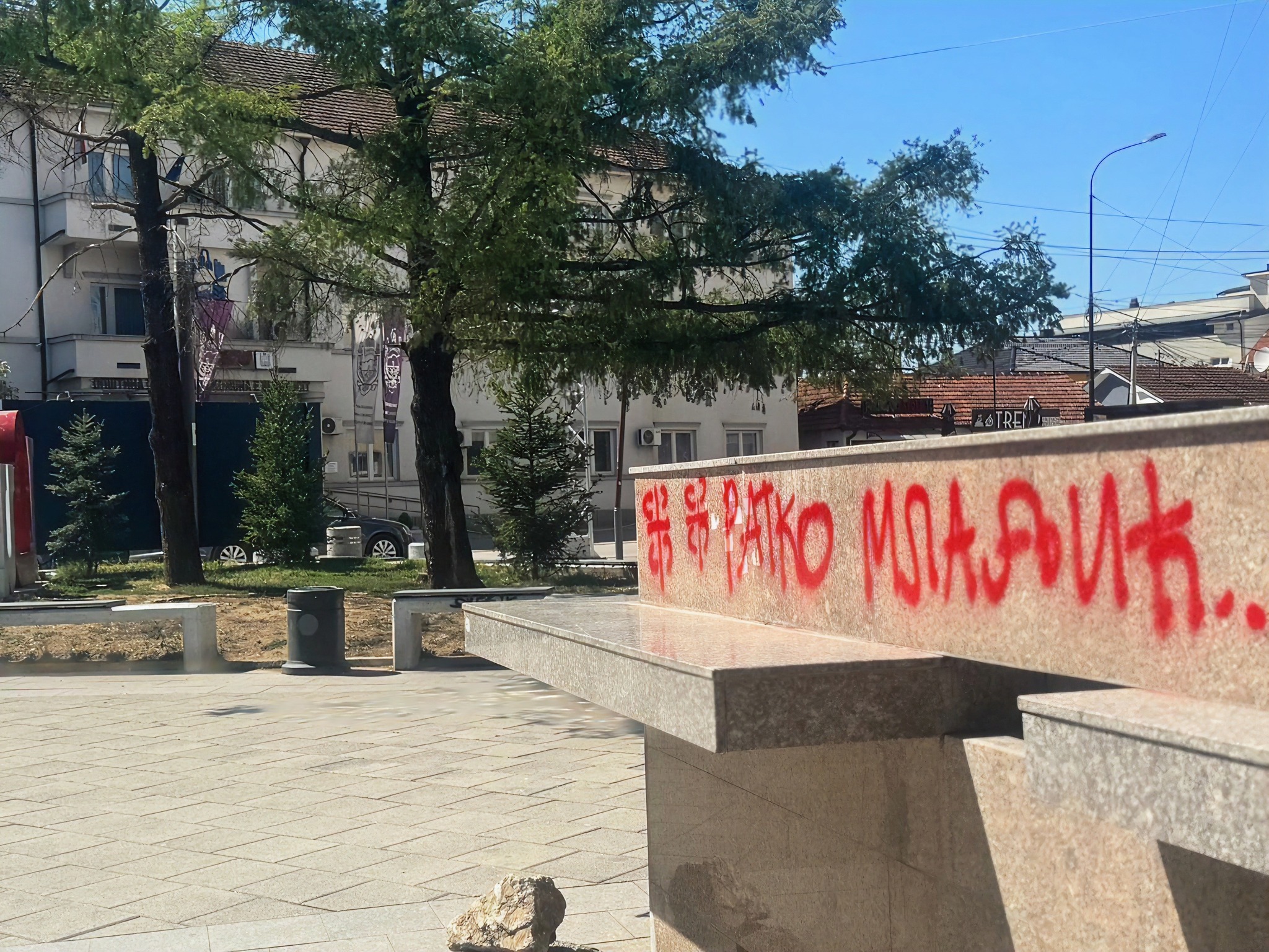 “Në gusht, u thye billboard-i i Komandant Lleshit, në përvjetorin e rënies së tij. Asnjë reagim nga autoritetet. As policore. As institucionale. Paraprakisht ishin shfaqë grafite me thirrje për vrasje të shqiptarëve dy herë tek Shtëpia e Shëndetit. Prapë heshtje. Sot, kemi këtë: “РАТКО МЛАДИЋ” me të kuqe në qendër të qytetit me katër C. E njohim mirë këtë stil. Nacionalizëm, provokim dhe frikësim i qëllimshëm i shqiptarëve në vendin e tyre”, tha ai