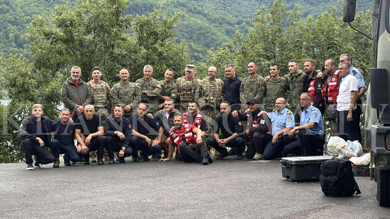 Në pamje shihen pjesëtar nga Ushtria, Policia dhe ekipi i kërkim-shpëtimit.